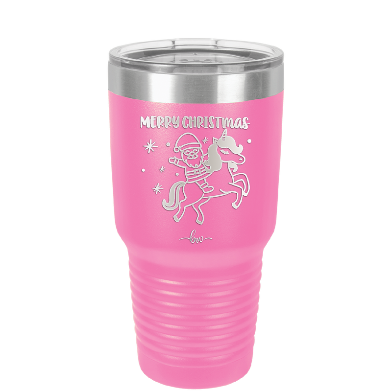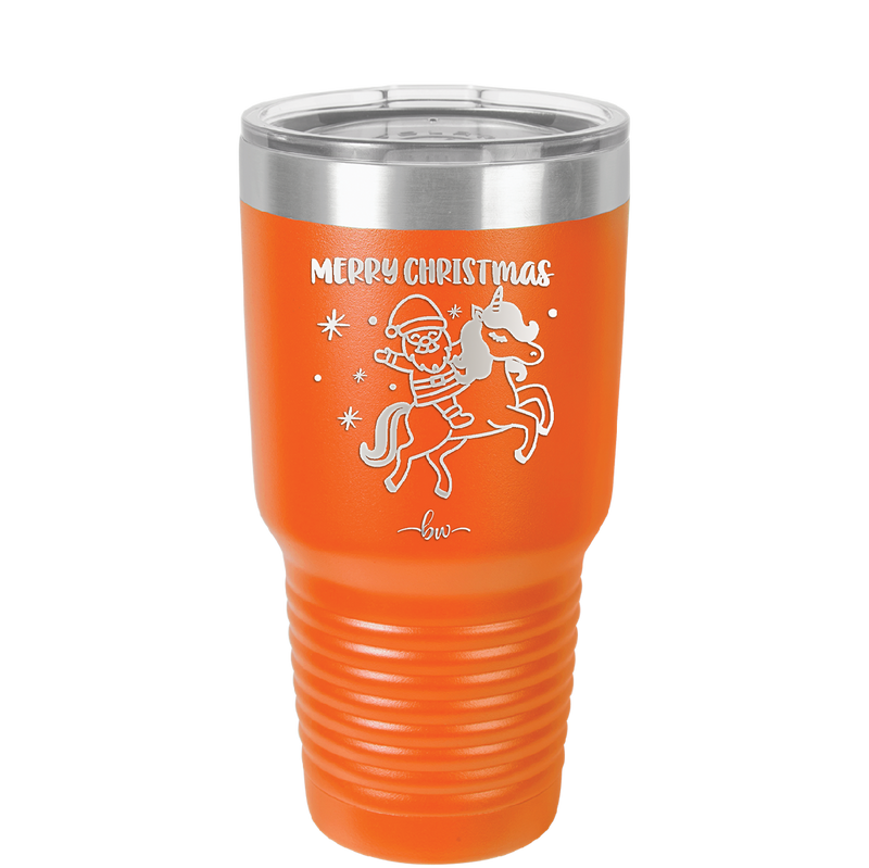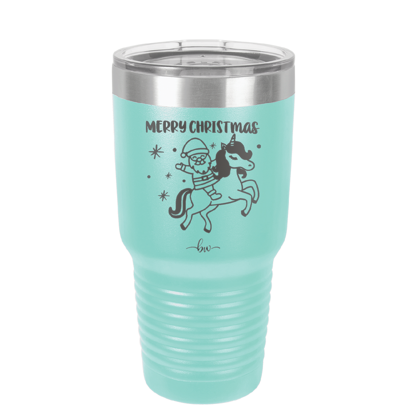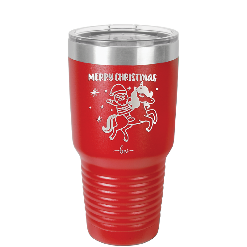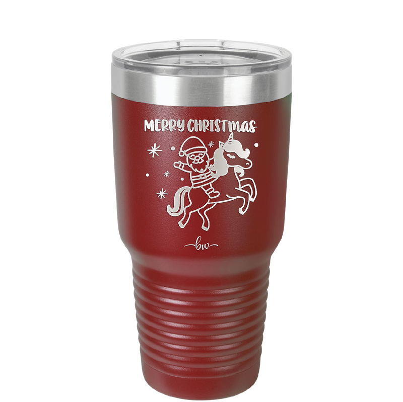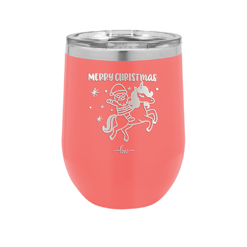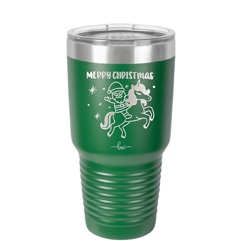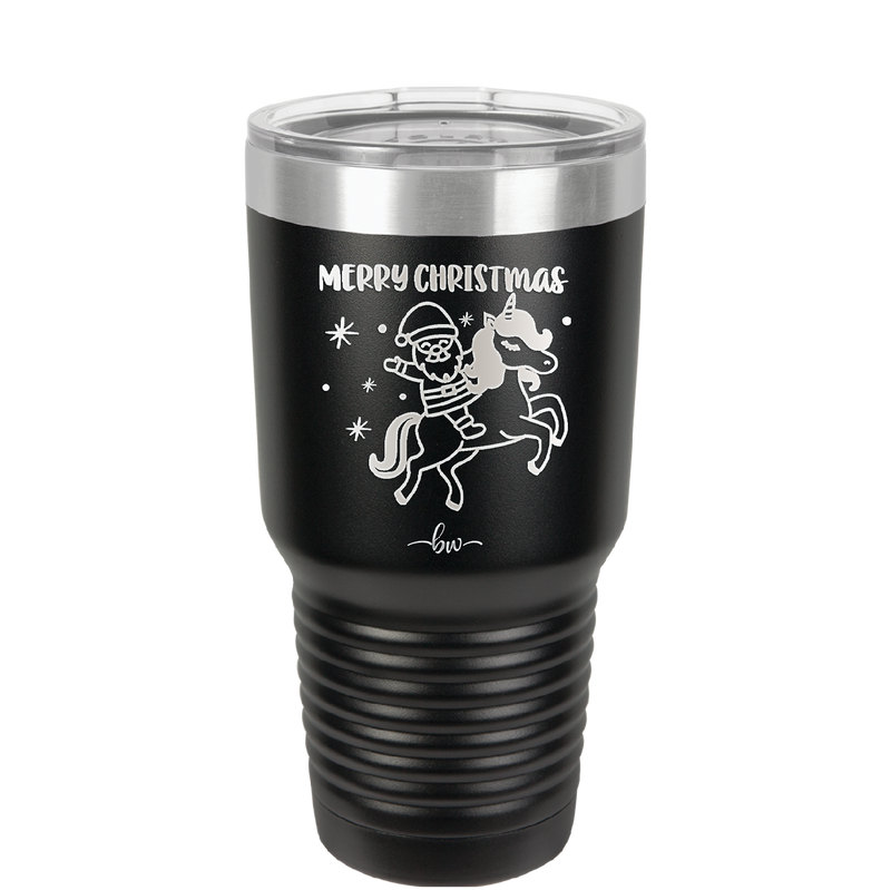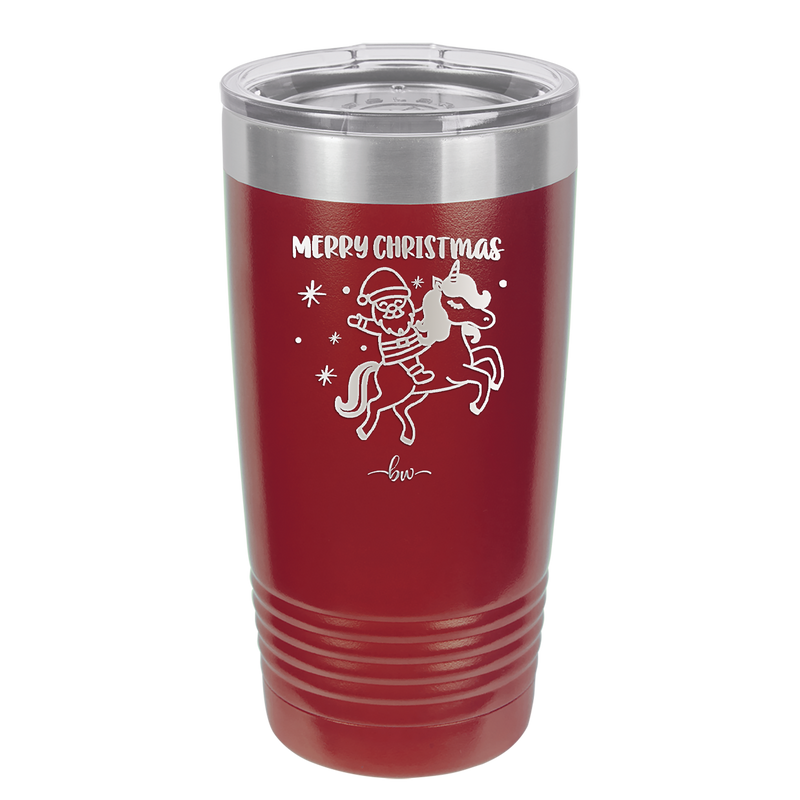 Merry Christmas Santa Unicorn - Laser Engraved Stainless Steel Drinkware - 1645 -