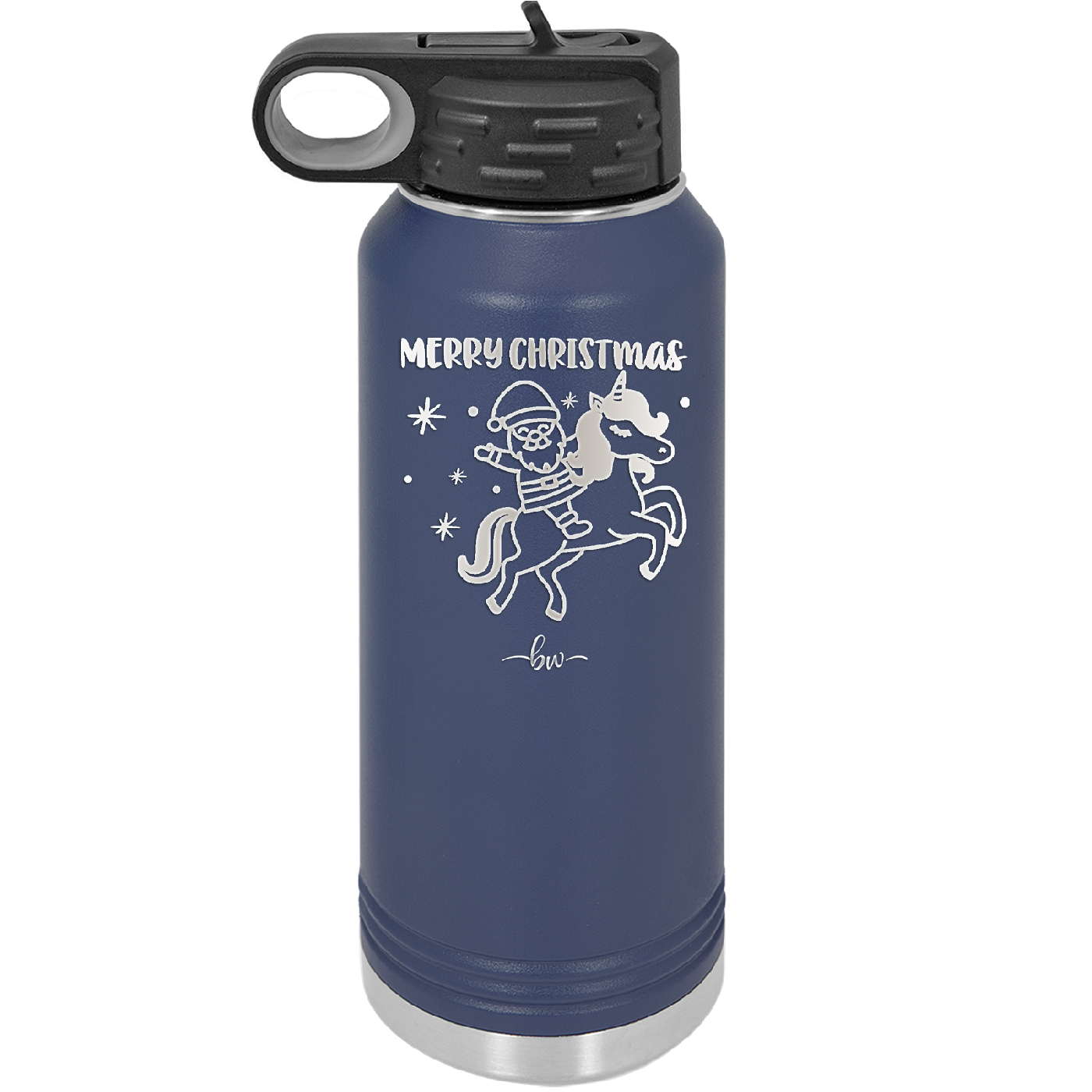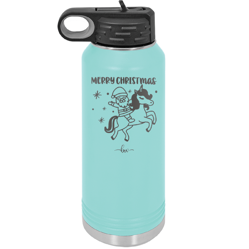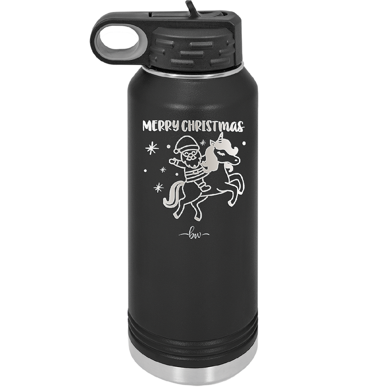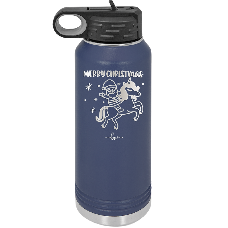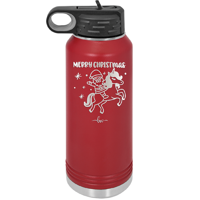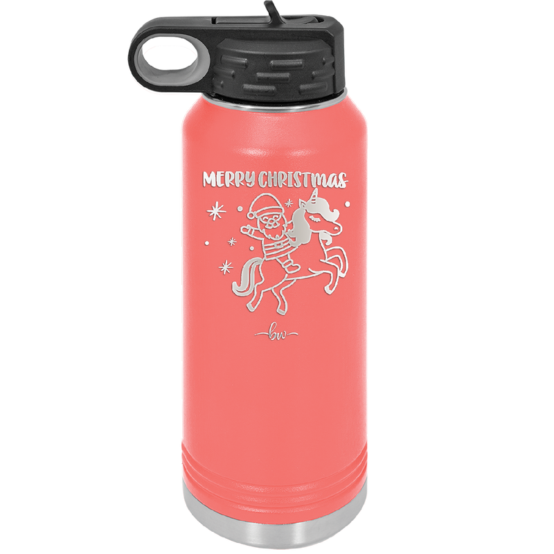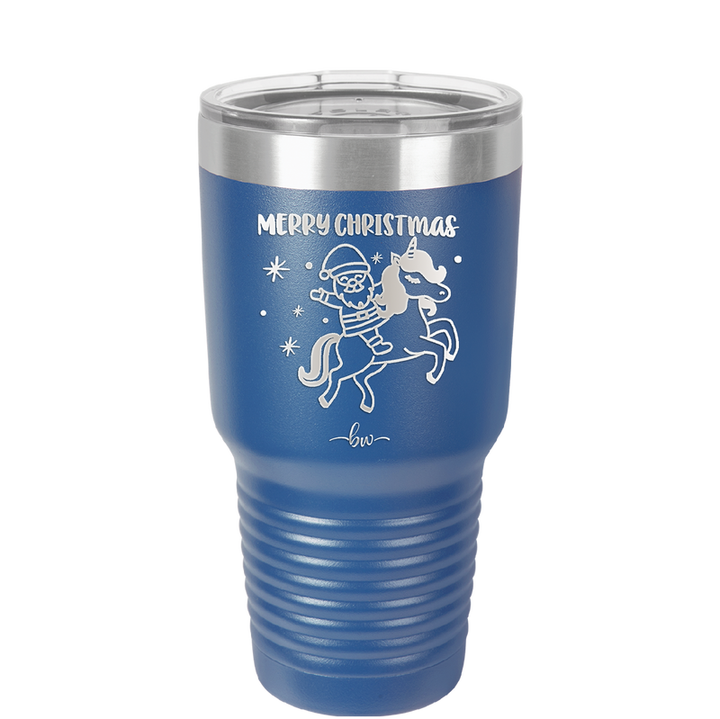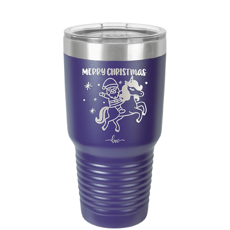 Merry Christmas Santa Unicorn - Laser Engraved Stainless Steel Drinkware - 1645 -