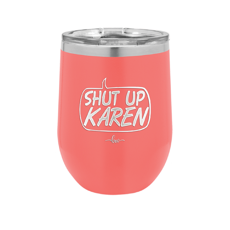 Shut Up Karen Speech Bubble - Laser Engraved Stainless Steel Drinkware - 2477 -