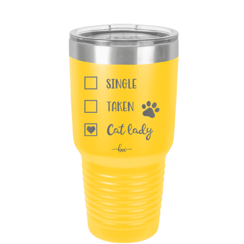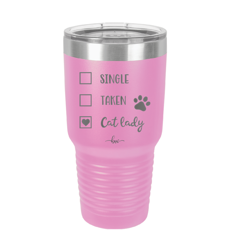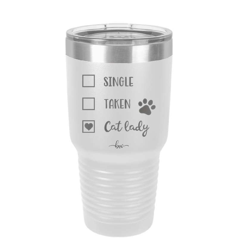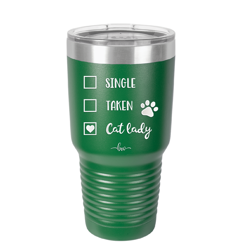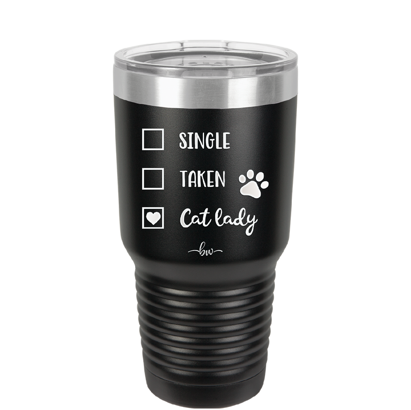 Single. Taken. Cat Lady. - Laser Engraved Stainless Steel Drinkware - 1728 -