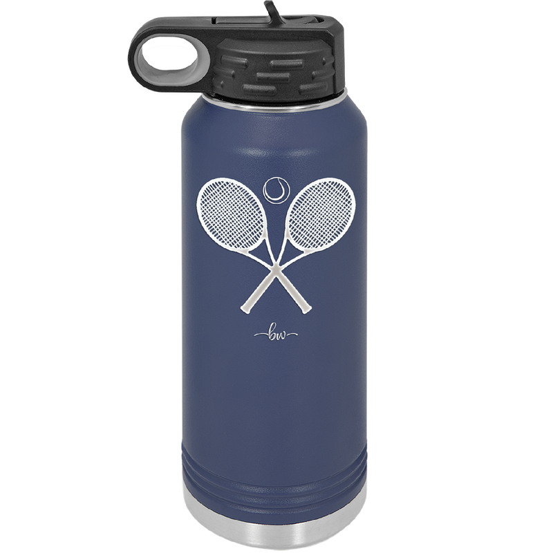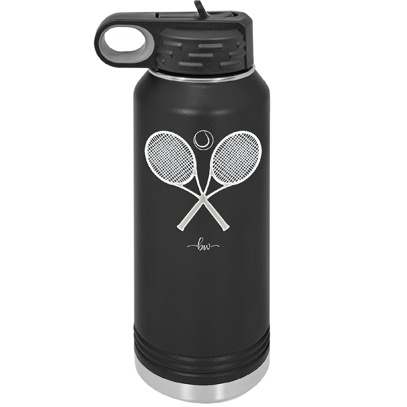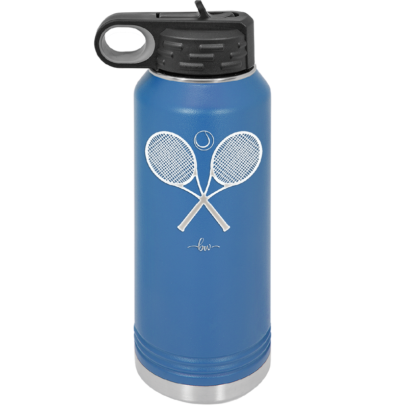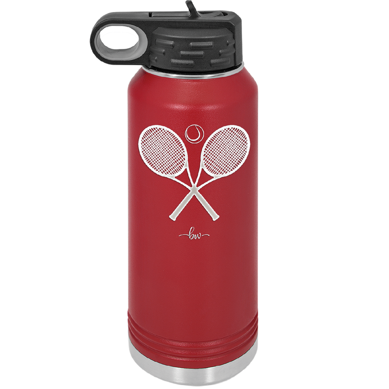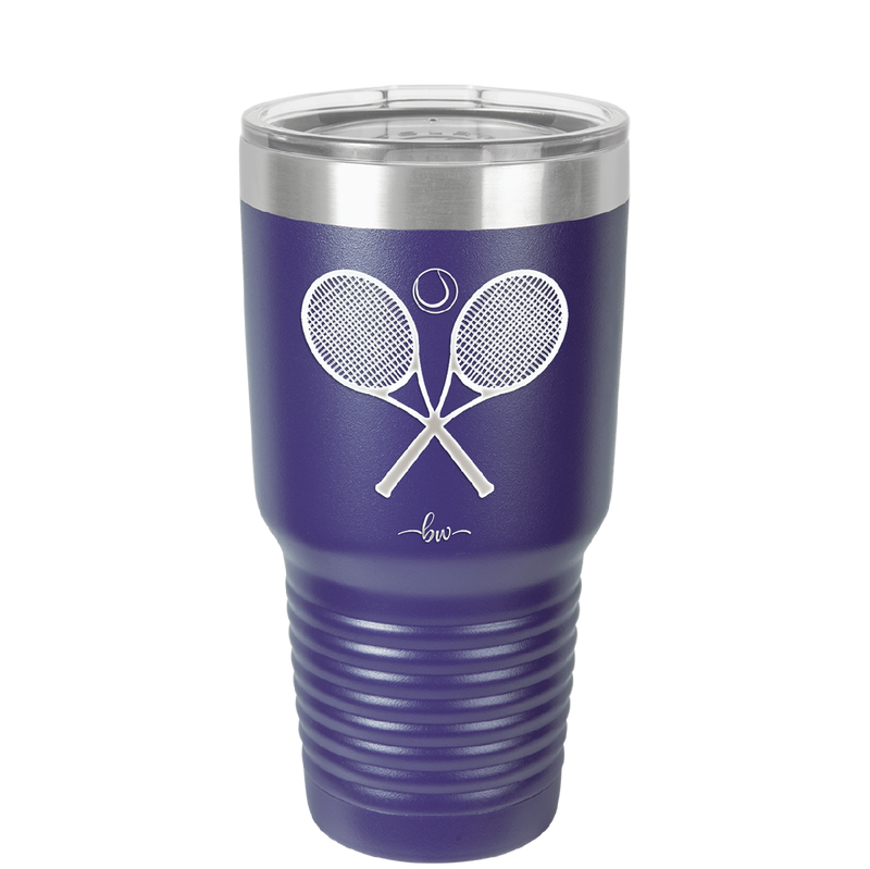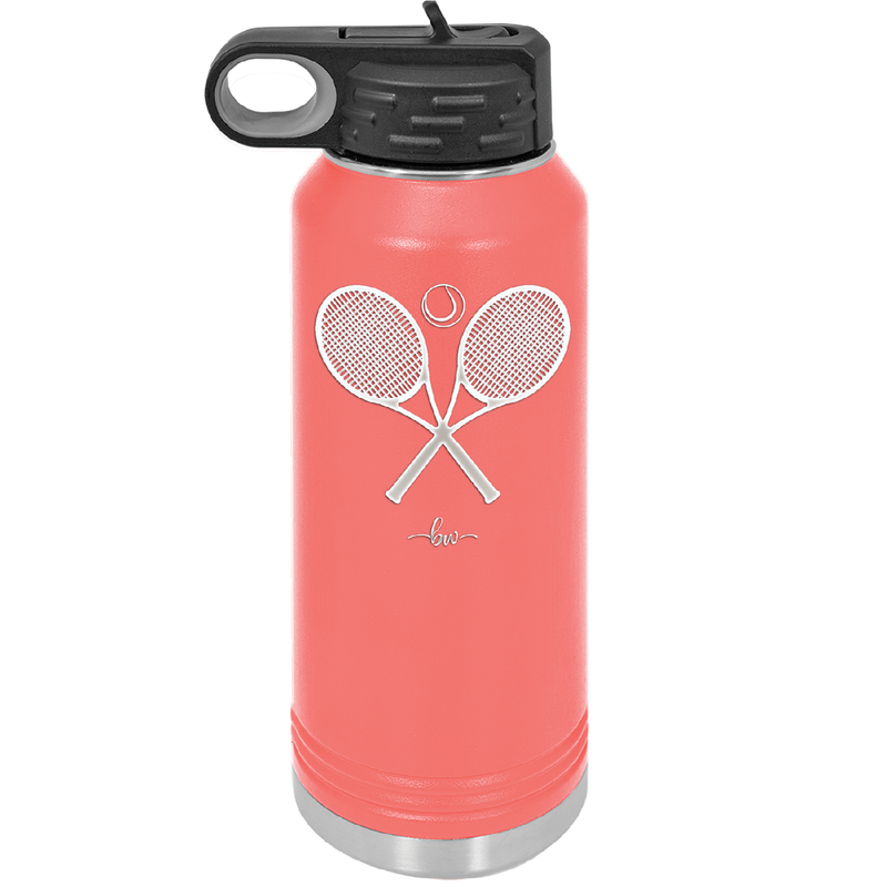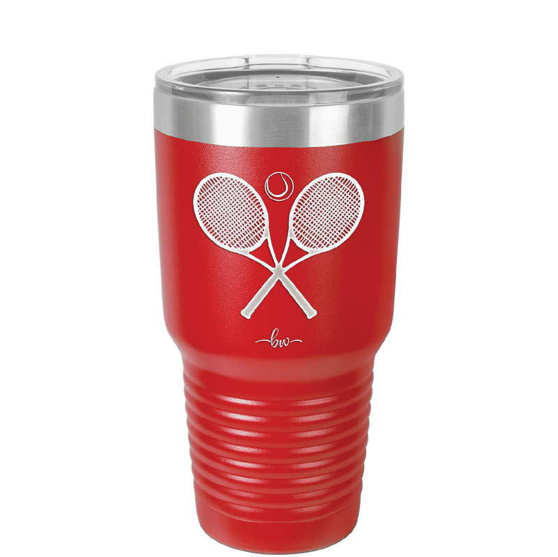 Tennis Crossed Rackets - Laser Engraved Stainless Steel Drinkware - 1922 -