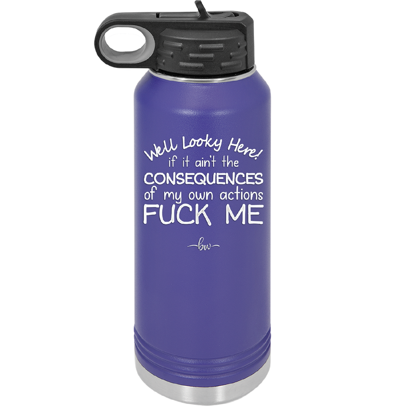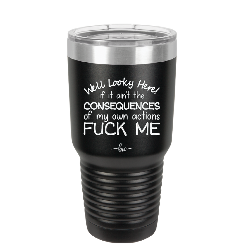 Well Looky Here If it Ain't the Consequences of My Own Actions Fuck Me - Laser Engraved Stainless Steel Drinkware - 2331 -